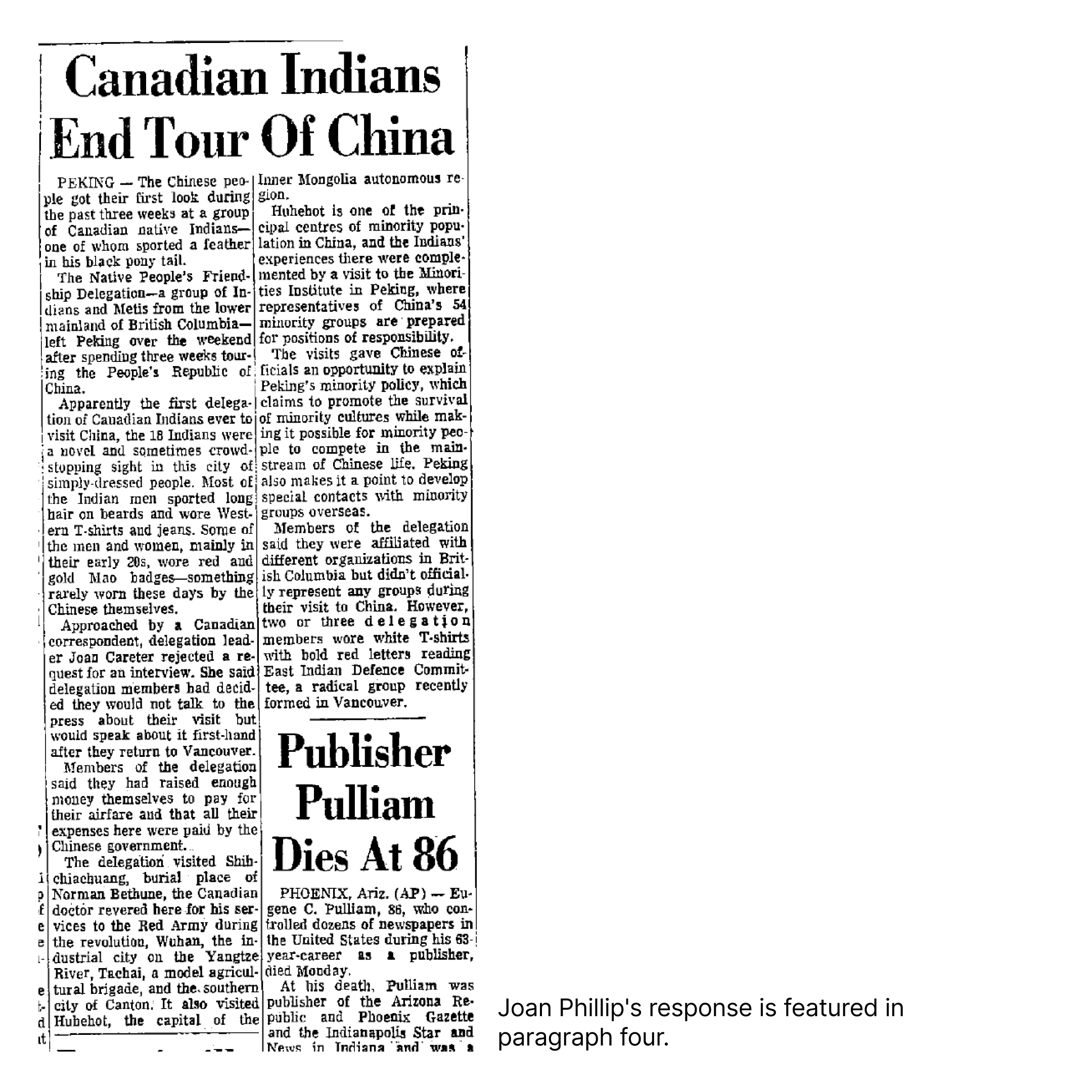 June 22, Canada: The Native People’s Friendship delegation returns to Canada